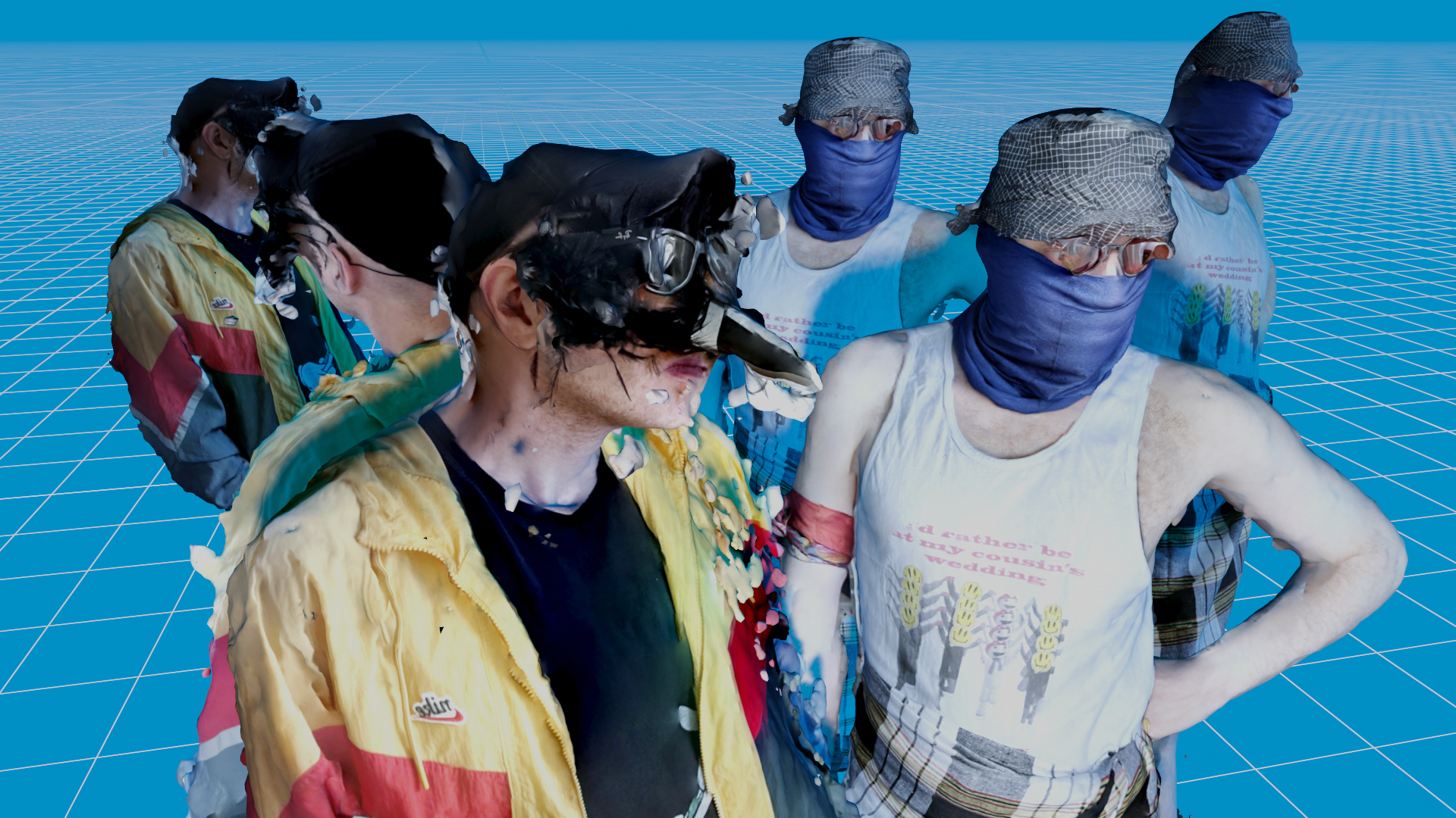 Zwei Dumme in Neonorange. Ein Schlagzeug, ein Keyboard, ein Mistkübel, wenig musikalische